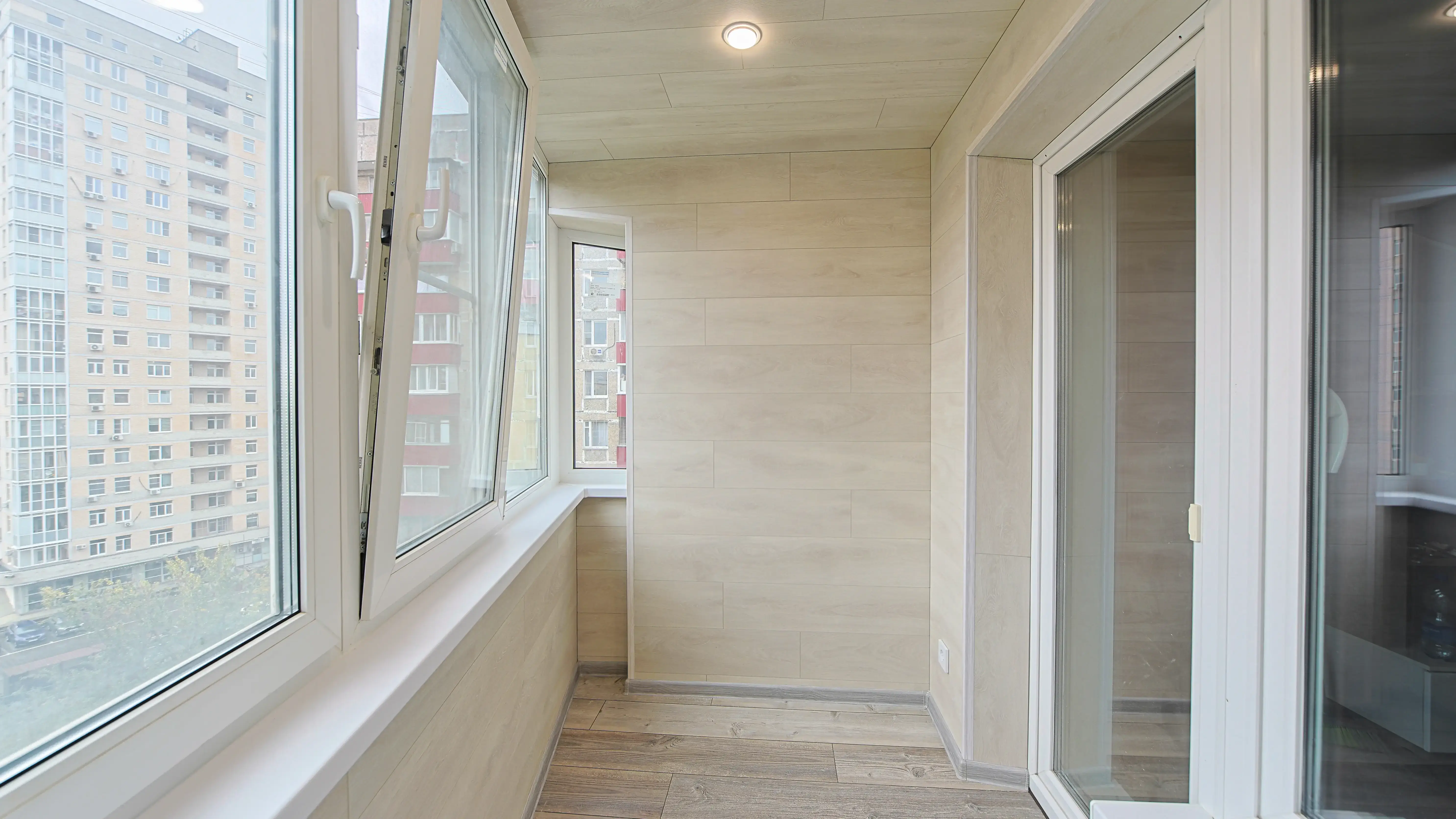 Сроки: 1,5 недели — изготовление окон, 1 день — демонтаж-монтаж окон, 3 дня — отделка и утепление балкона. Выполнено одной бригадой.
