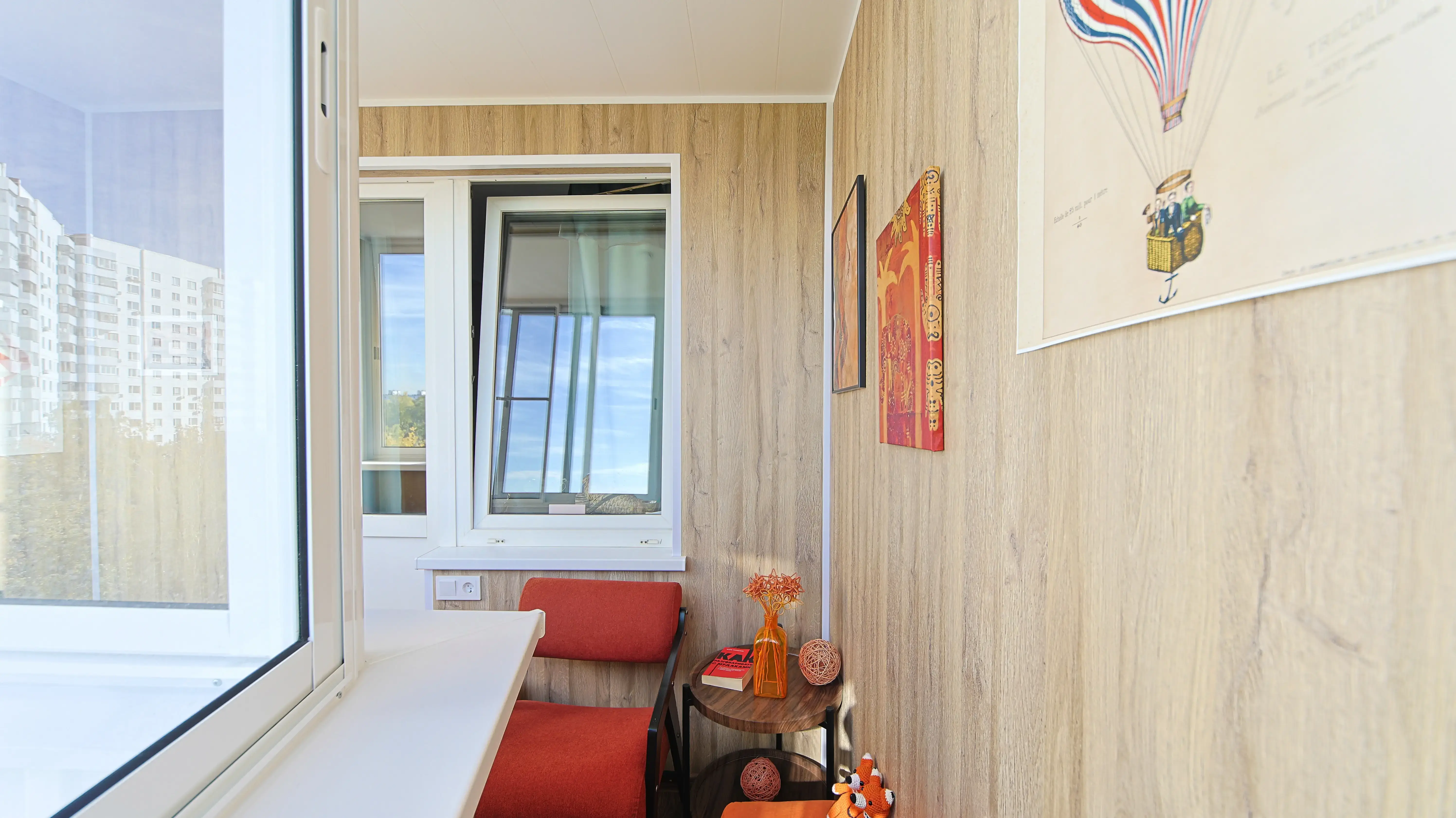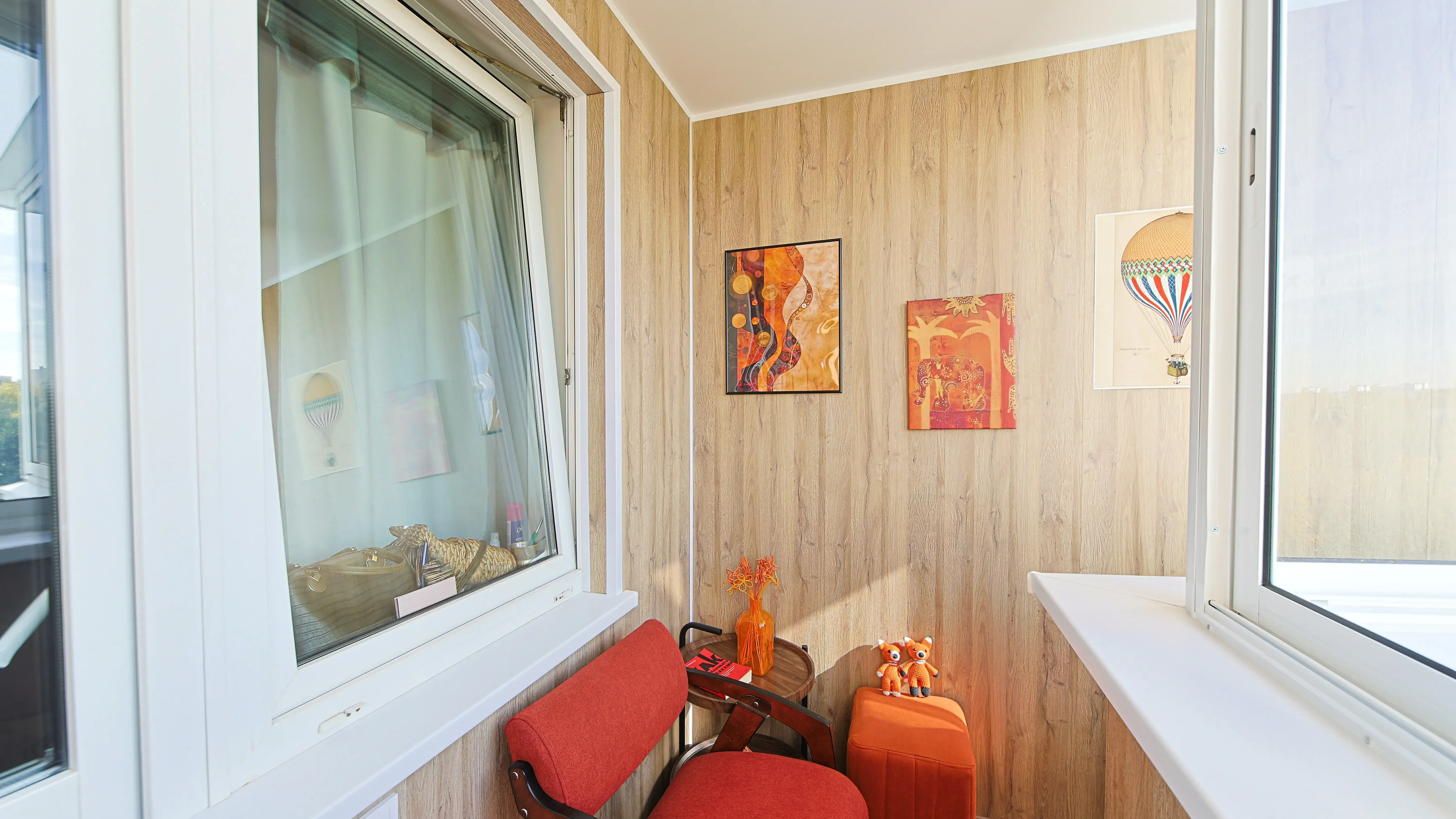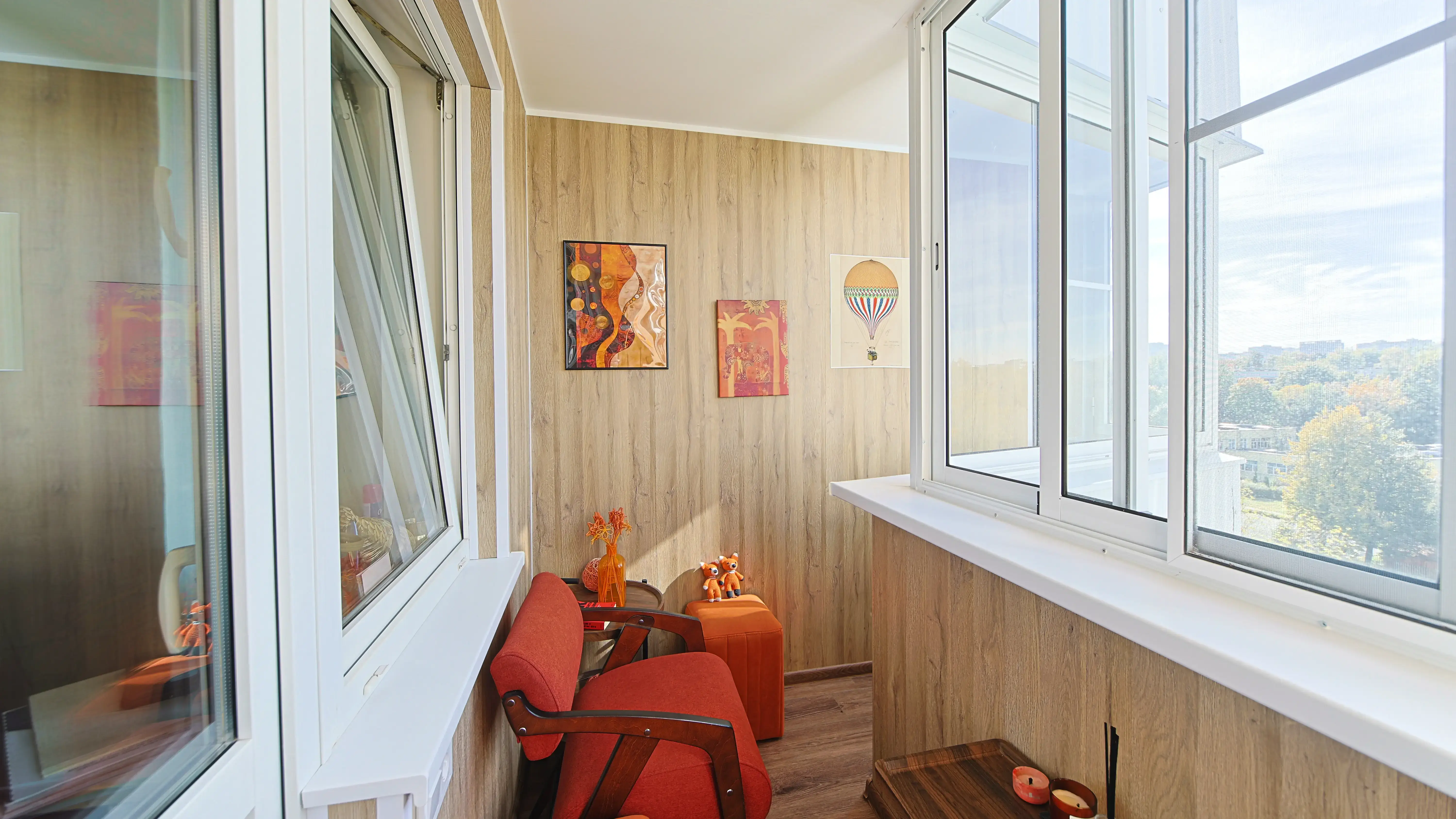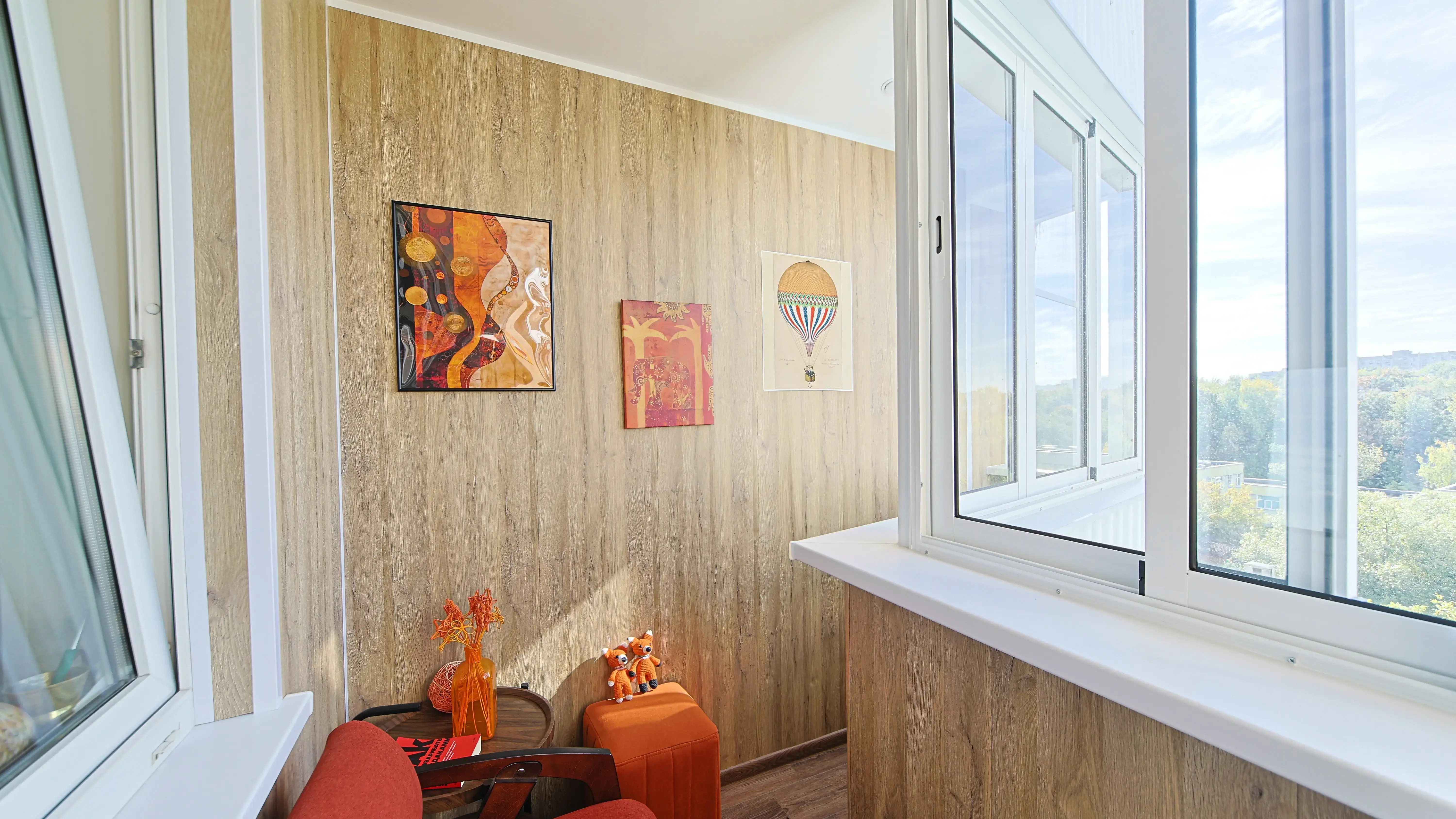 Дополнительно: облагорожен балконный блок — выполнены аккуратные откосы, установлен подоконник и порожек. Сложная конфигурация с большим количеством внутренних и наружных углов выведена в «ноль» с точной подгонкой всех элементов.