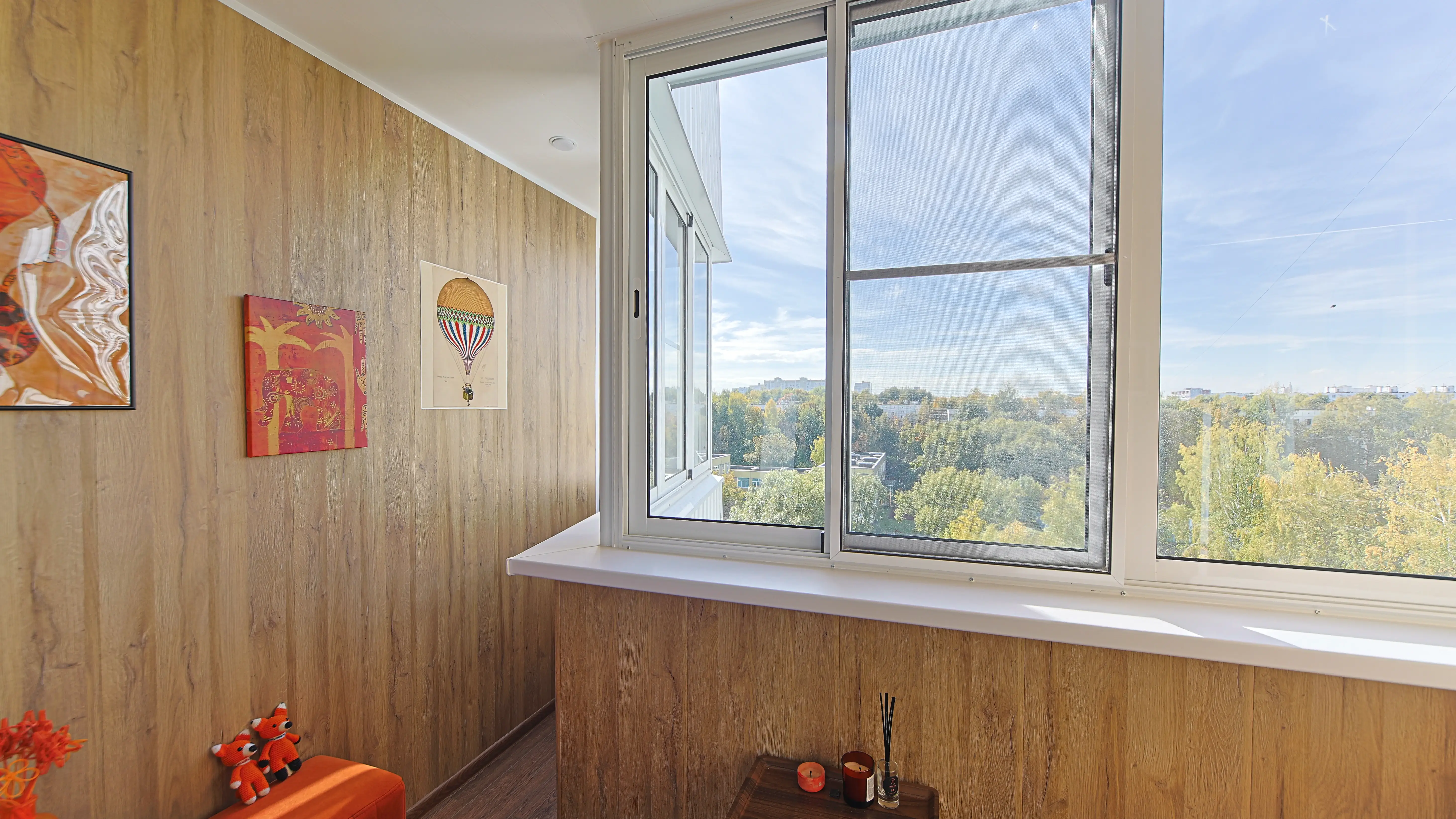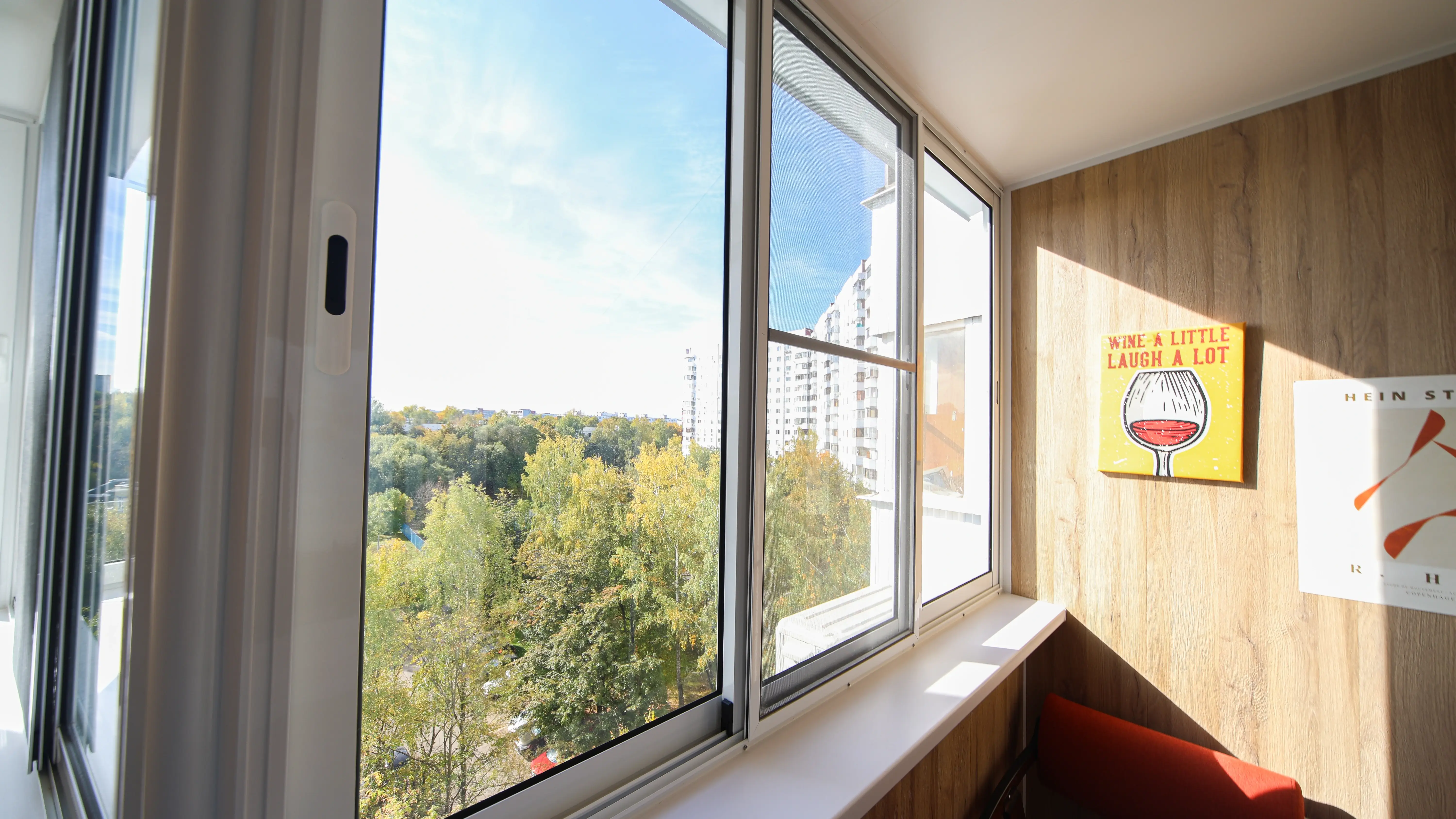 Основные этапы работ: выполнено холодное остекление Provedal — по три створки на каждый пролёт. В местах, где раздвижные системы были невозможны, установлены классические открывающиеся створки. Парапет утеплён пеноплексом для снижения шума и повышения комфорта. Устранена щель около 10 см между плитой и парапетом. Внешний блок кондиционера до начала работ вынесен наружу.