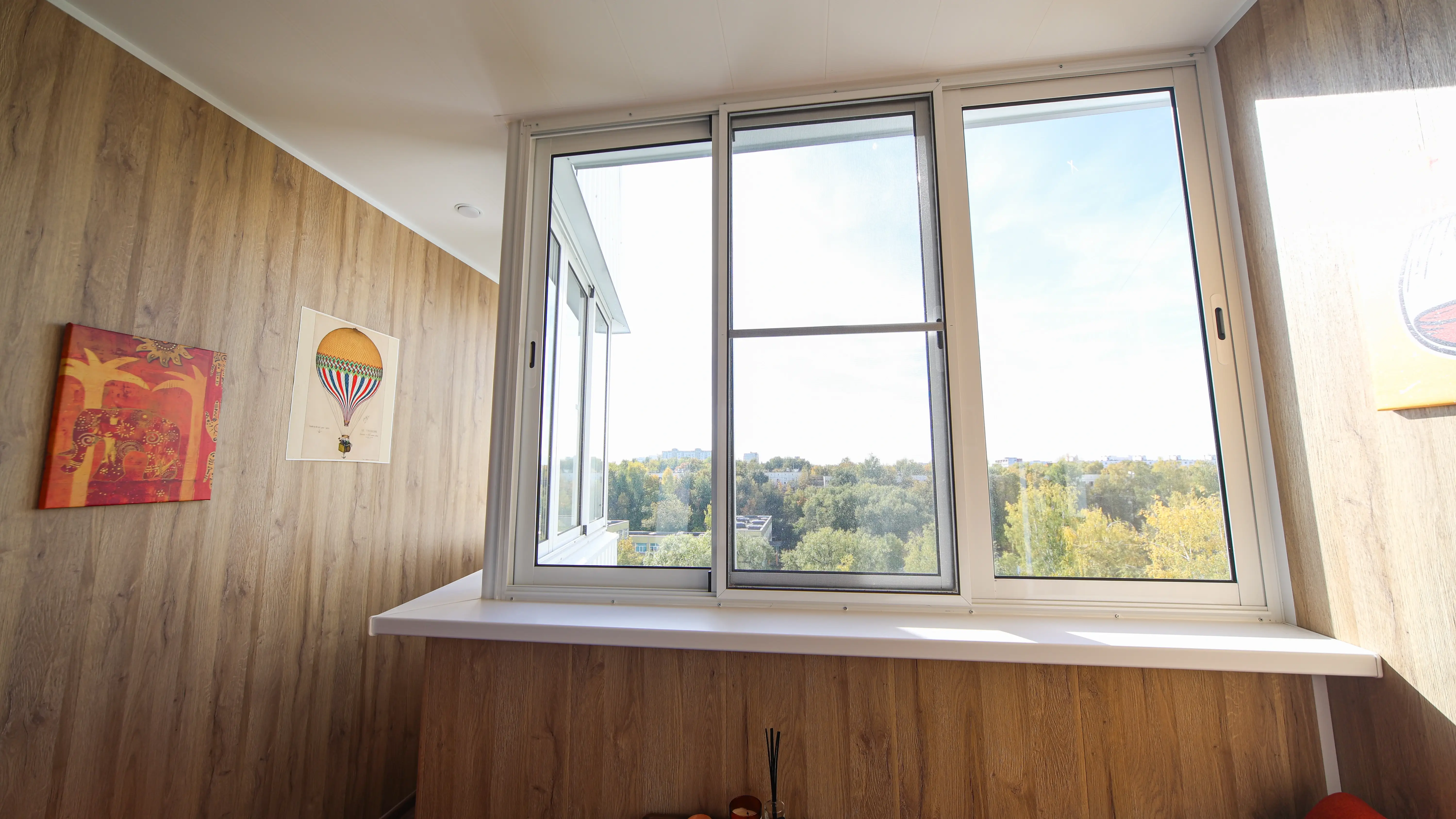 Работы по холодному остеклению и отделке лоджии сложной формы были успешно реализованы компанией «Балкония».